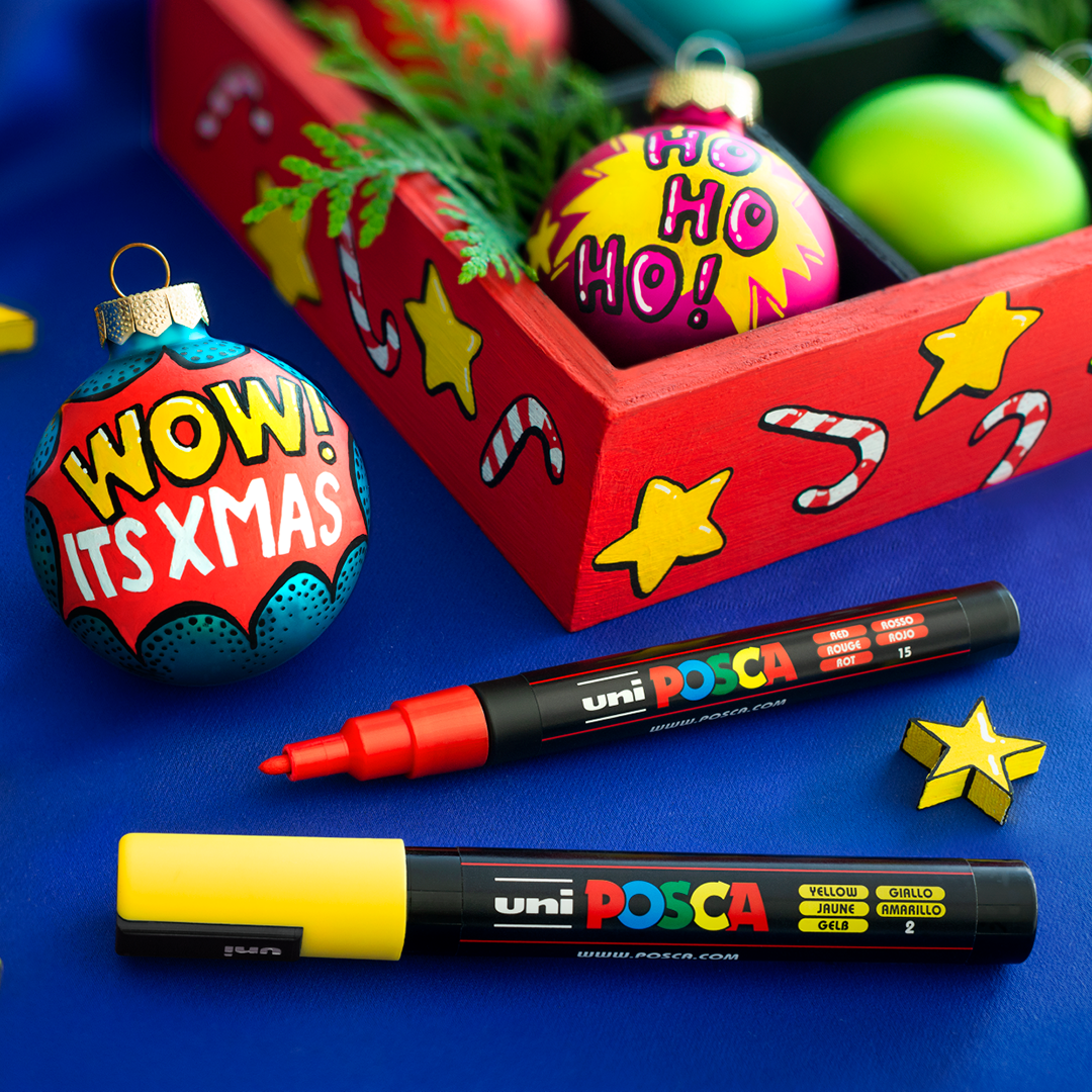 Amid all the December bustle, a small creative project can be the perfect little breather. With Posca, the opaque acrylic marker that adheres to almost anything, it becomes easy to add personal touches that make Christmas feel even cosier. Here you’ll find four creative ideas you can adapt to whatever you have at home, whether you want to brighten up the festive table, refresh old baubles or wrap gifts in a new and sustainable way.