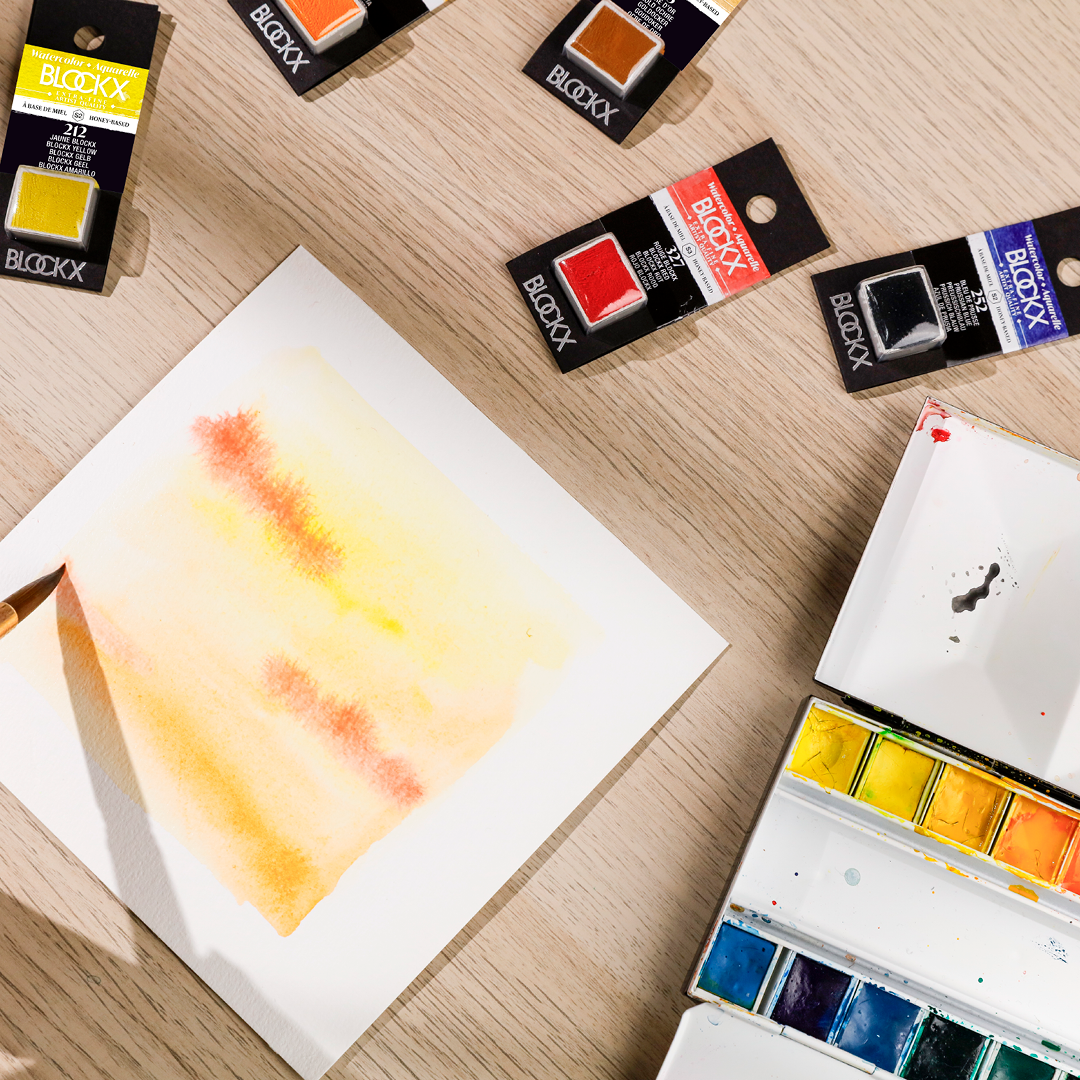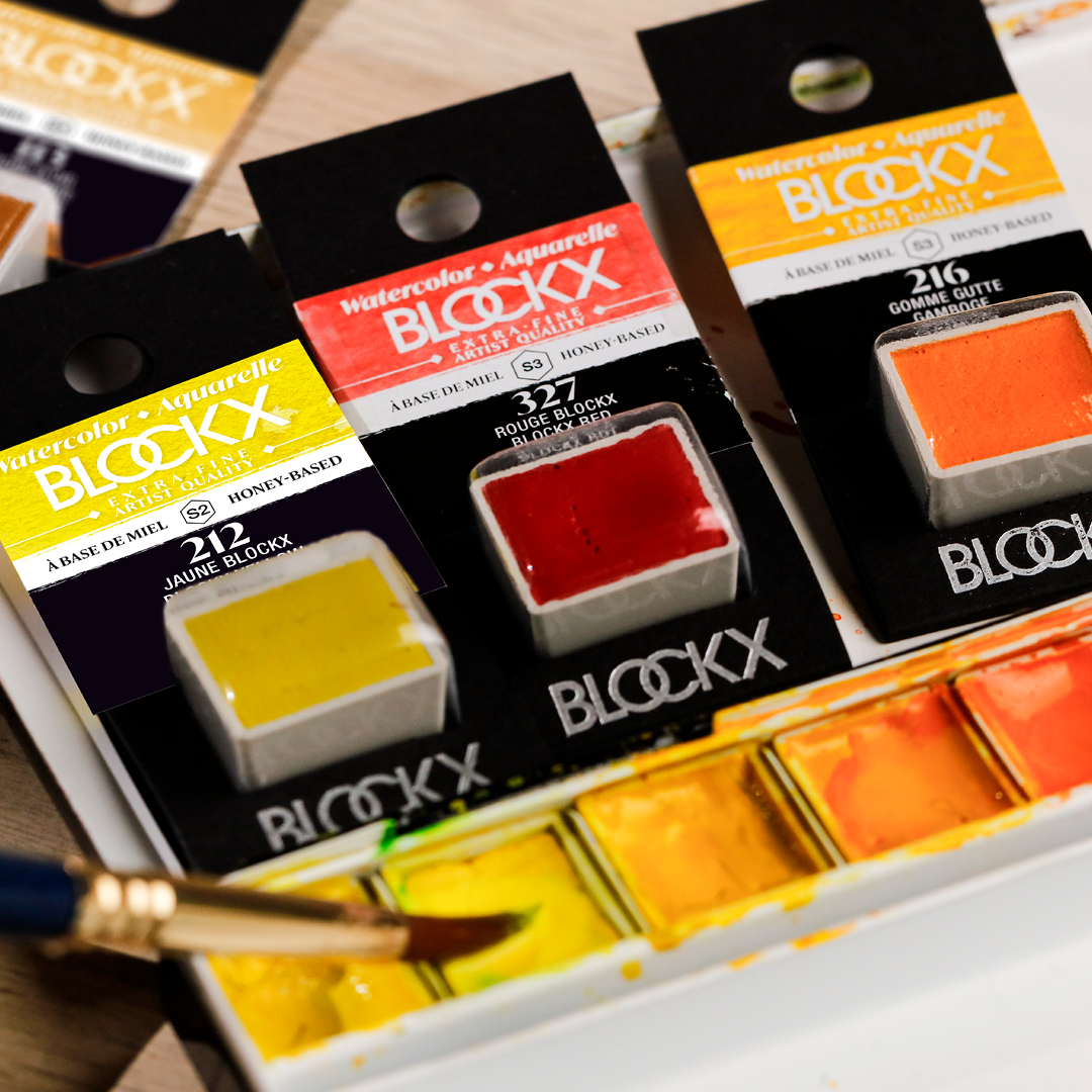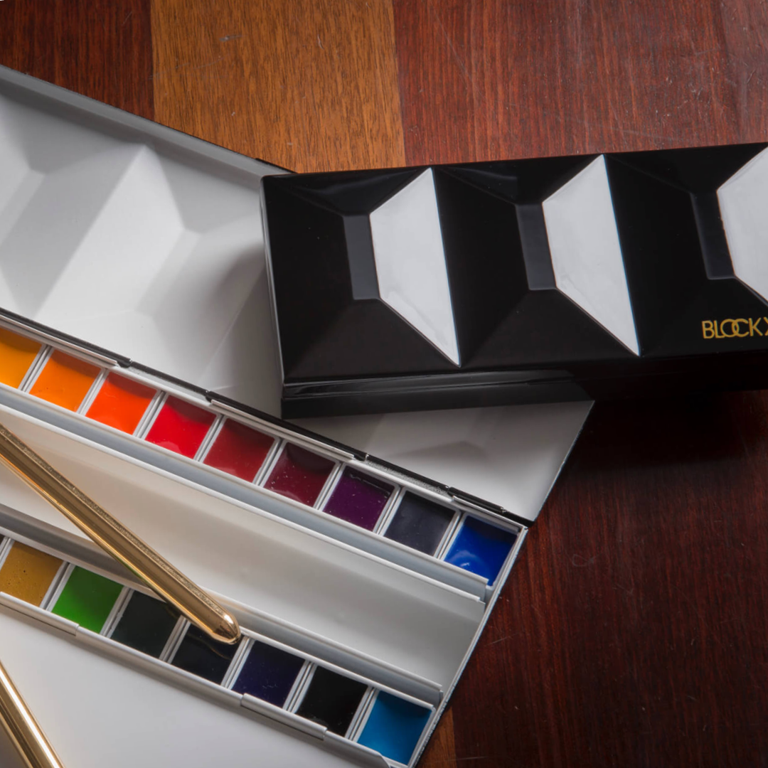 Blockx watercolour paint is available both as single colours and ready made sets, in tubes or half pans, so you can build your own palette or start straight away with a carefully selected range.
