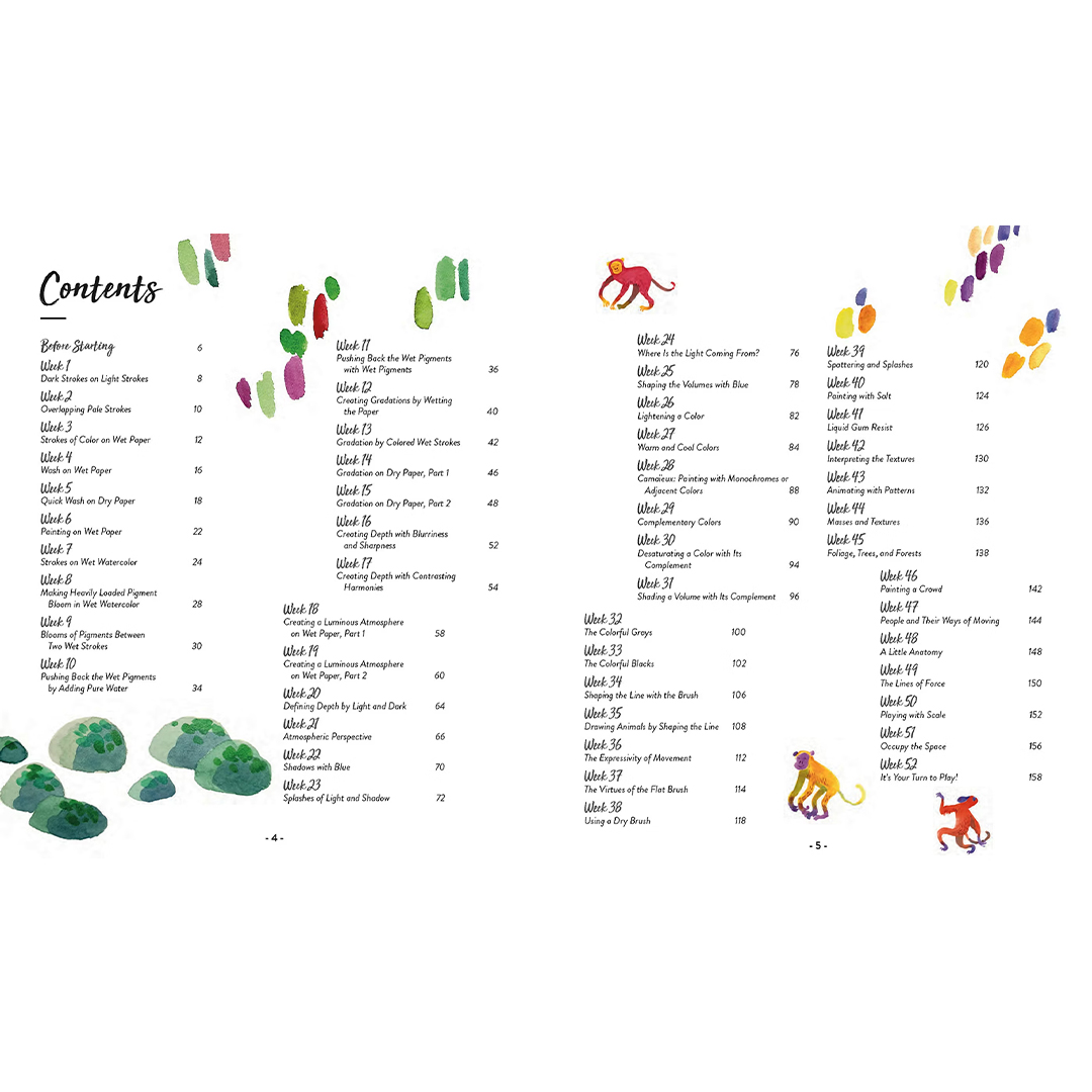 Artist and textile designer Mademoiselle Ripoll takes beginners on a delightful watercolor journey featuring 52 year-round projects where delicate washes and vibrant hues come to life.