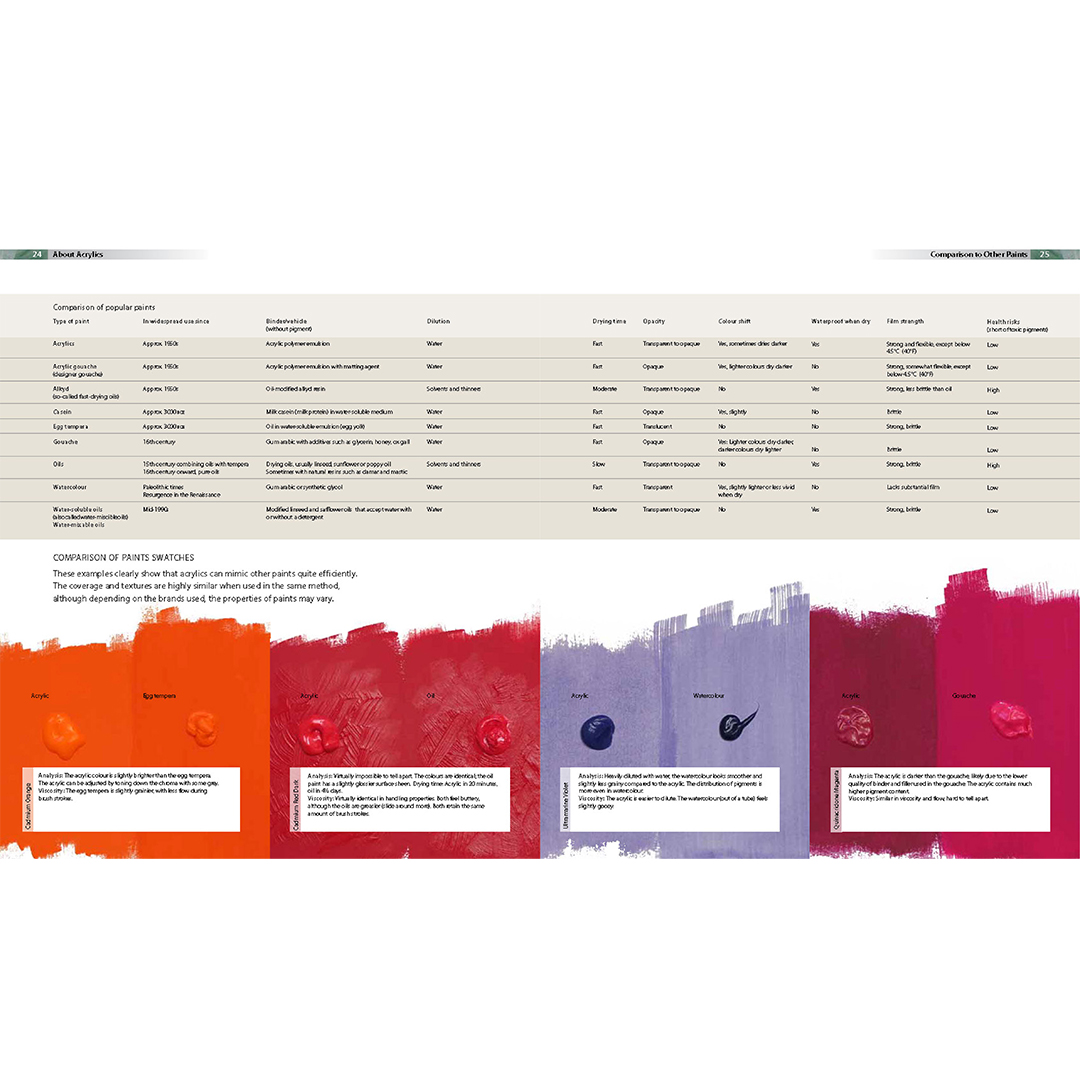 This is the ultimate resource guide for acrylic painters. Every painting technique is explained and demonstrated, plus everything you need to know about paints, additives, brushes, papers, canvases, colour palettes, colour mixing, composition and more.