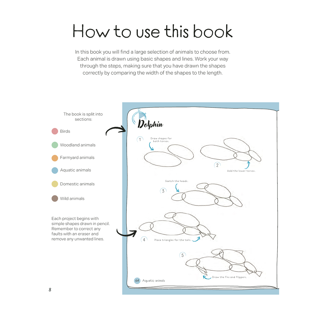 Draw all creatures ‘great and small’, including woodland, farmyard, aquatic, domestic and wild animals using this stunningly simple, easy-to-follow book.