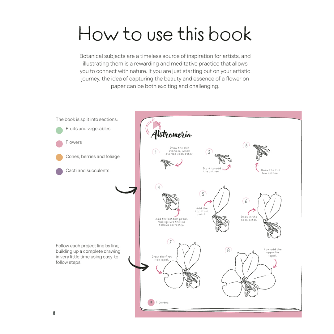 This book is perfect for beginner artists who’ve never drawn before, who want an easy guide to drawing and replicating their favourite flowers and more; it’s also a perfect prompt for more experienced illustrators searching for sketching ideas and keen to observe and recreate accurate botanical structure.