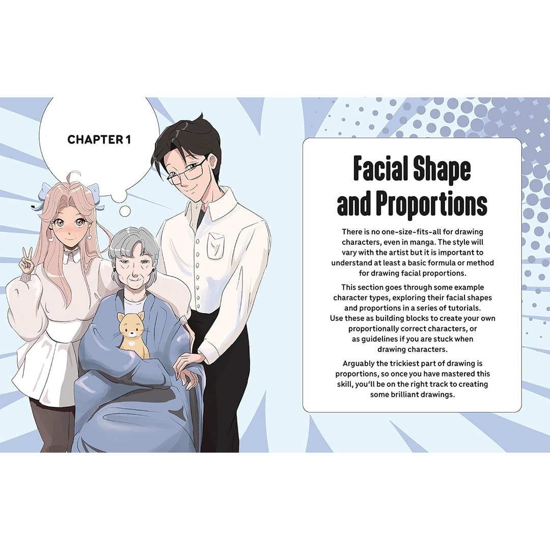 A blank page can often be daunting for a new artist. This book builds the fundamentals of the manga face across each chapter, with step-by-step visual tutorials, accompanied by tailored practice pages. This helps the reader take their first steps, providing the space and support to start without any of the stress that comes with how to fill a blank page.
