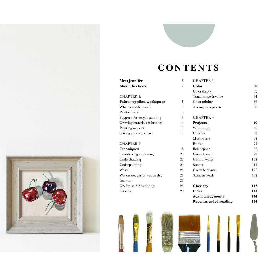 This inviting guide to acrylic painting is designed to help beginners gain confidence by building skills and knowledge step by step through ten small still-life paintings. It is specially tailored for beginners: the steps are clearly laid out and easy to follow, transferable to future works – and it includes traceable outlines so you can start painting straightaway!