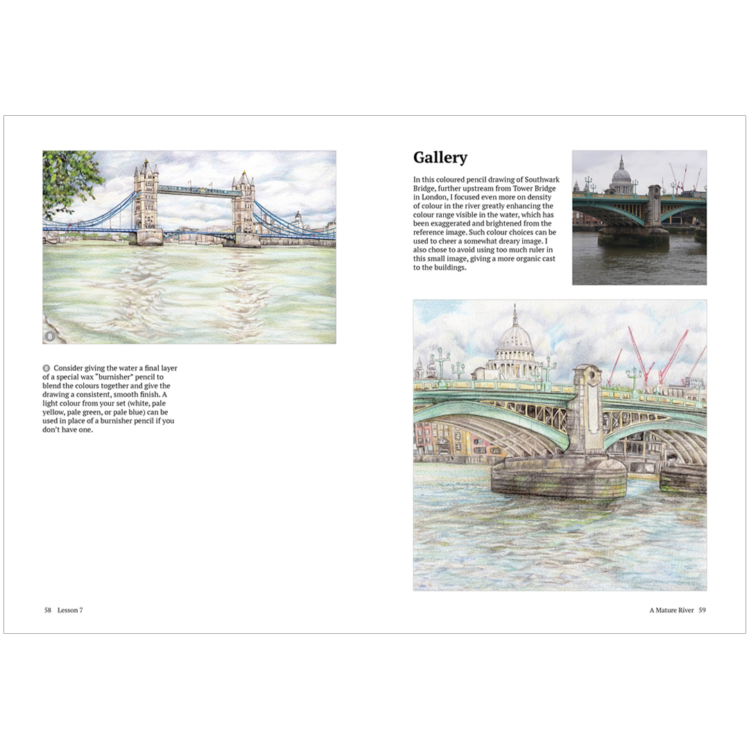 With exercises suitable for all levels – from beginners to experienced artists – Alex Boon guides you through techniques for both sketching and coloured pencil work, teaching how contrast and motion can bring water scenes to life.