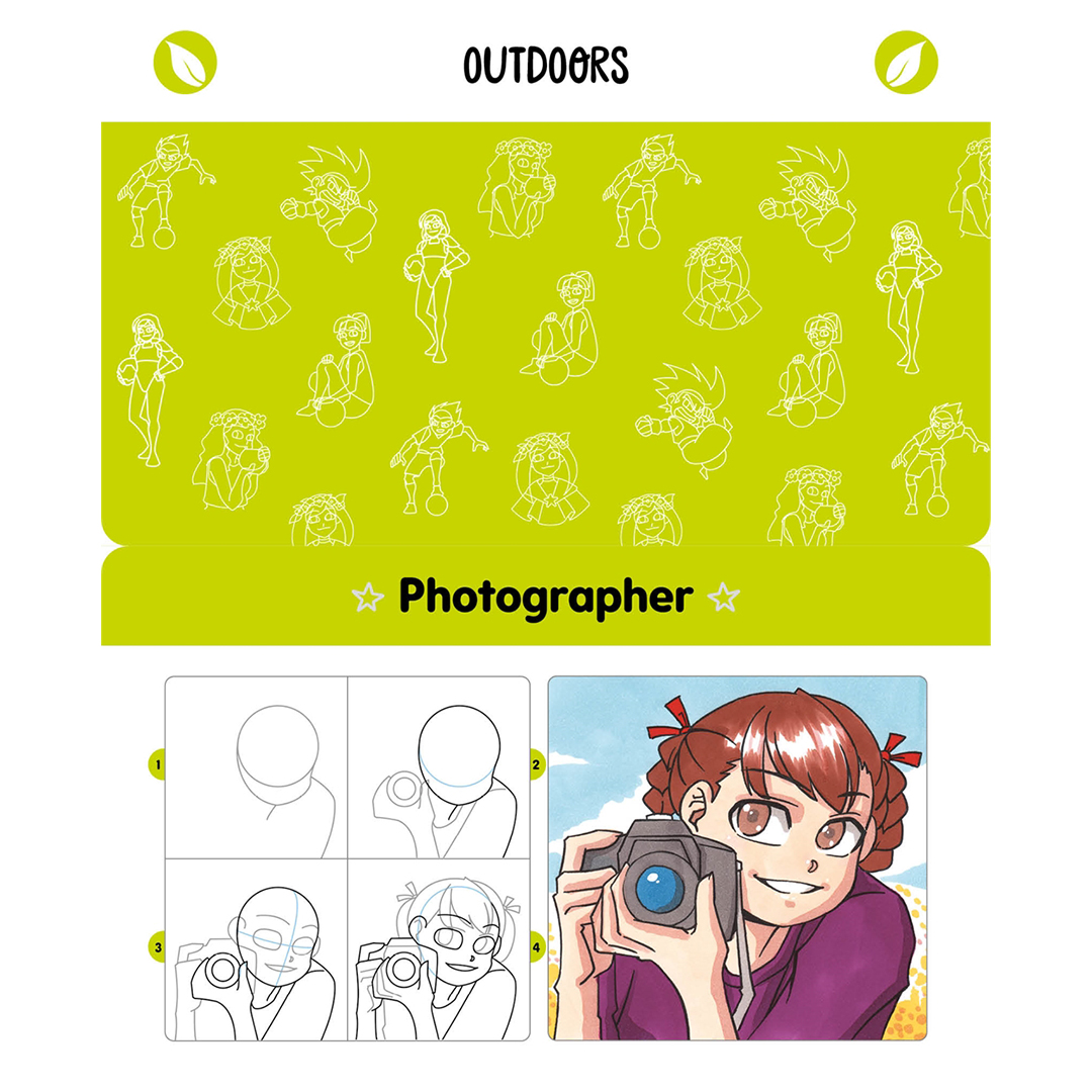 A beautiful box of reusable, lay-flat cards that feature prompts and simple directions to create 52 Manga characters.