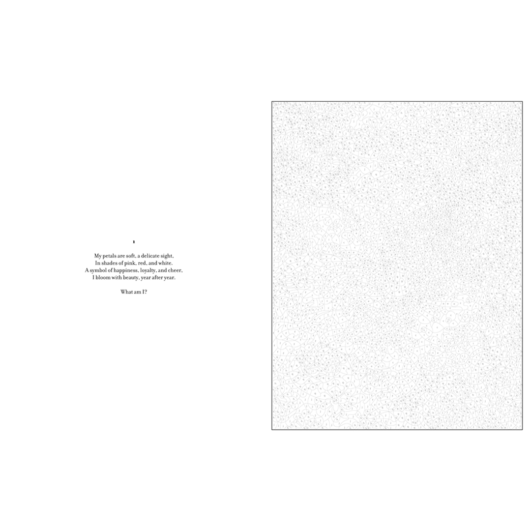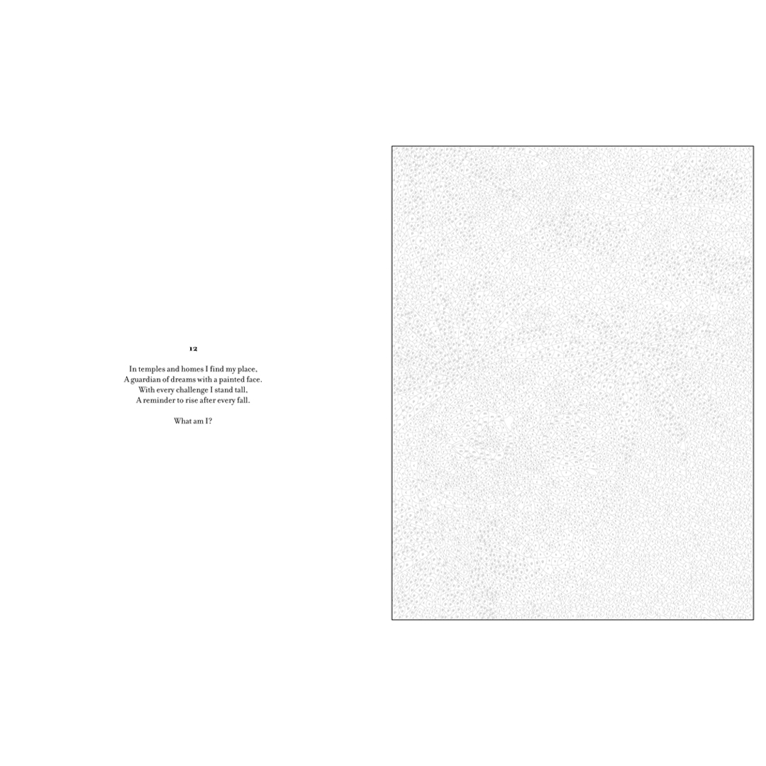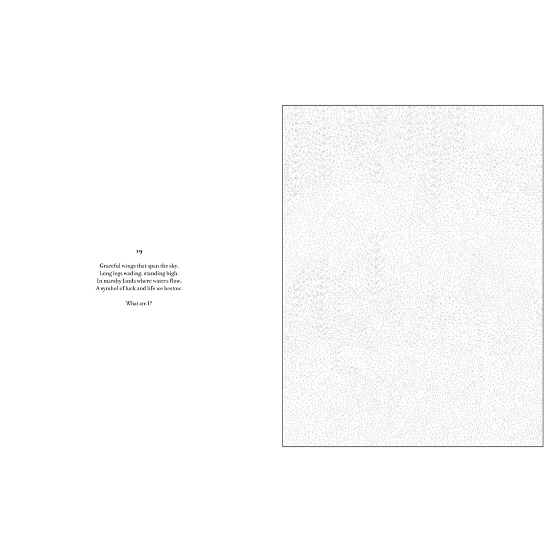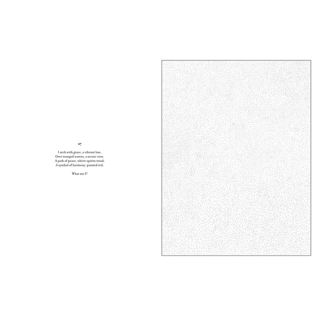- To add to the fun, each illustration comes with a riddle that you can ponder as you bring the artwork to life. Uncover the answers in words and pictures at the end of the book.