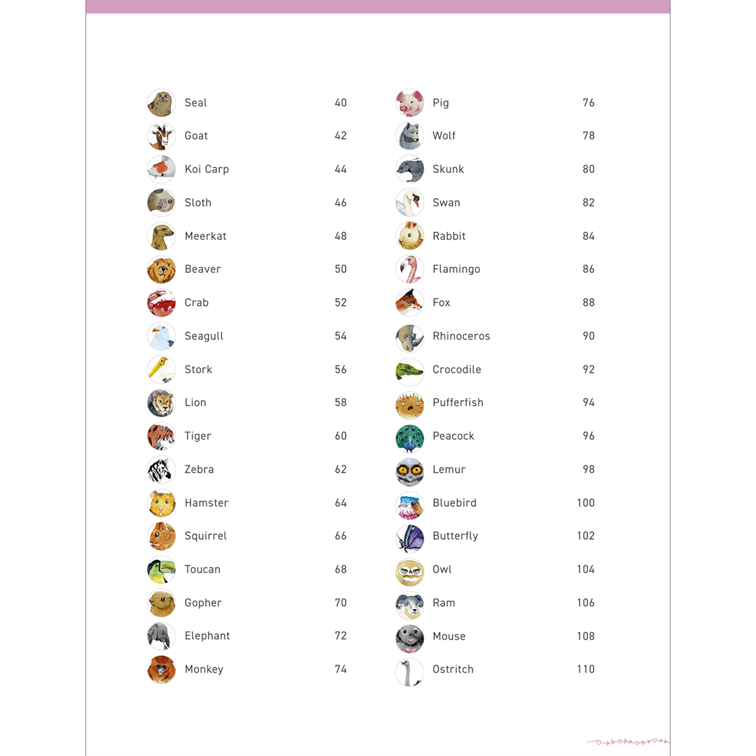 The book includes a short list of tools and materials to get started, plus a clear and informative guide to the essential techniques required to paint this varied collection of animals.