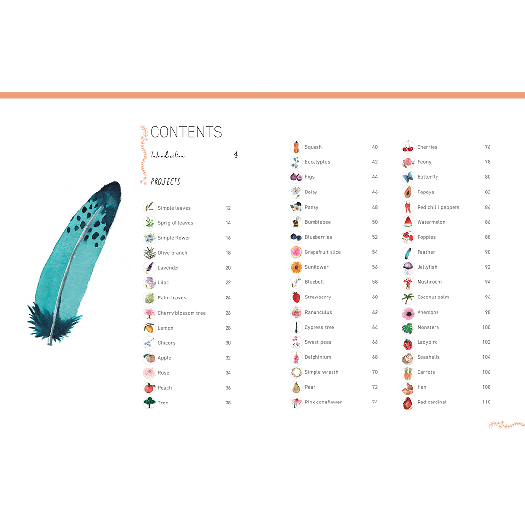 Over the course of 50 simple watercolour projects including exotic fruit, vibrant insects and loose, ethereal flowers this beginner-friendly title will teach you how to let loose and go with the flow as you paint! Each project can be completed in six to eight simple steps, using a small selection of colours and a handful of easy-to-follow watercolour techniques.