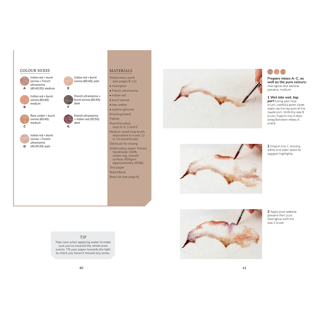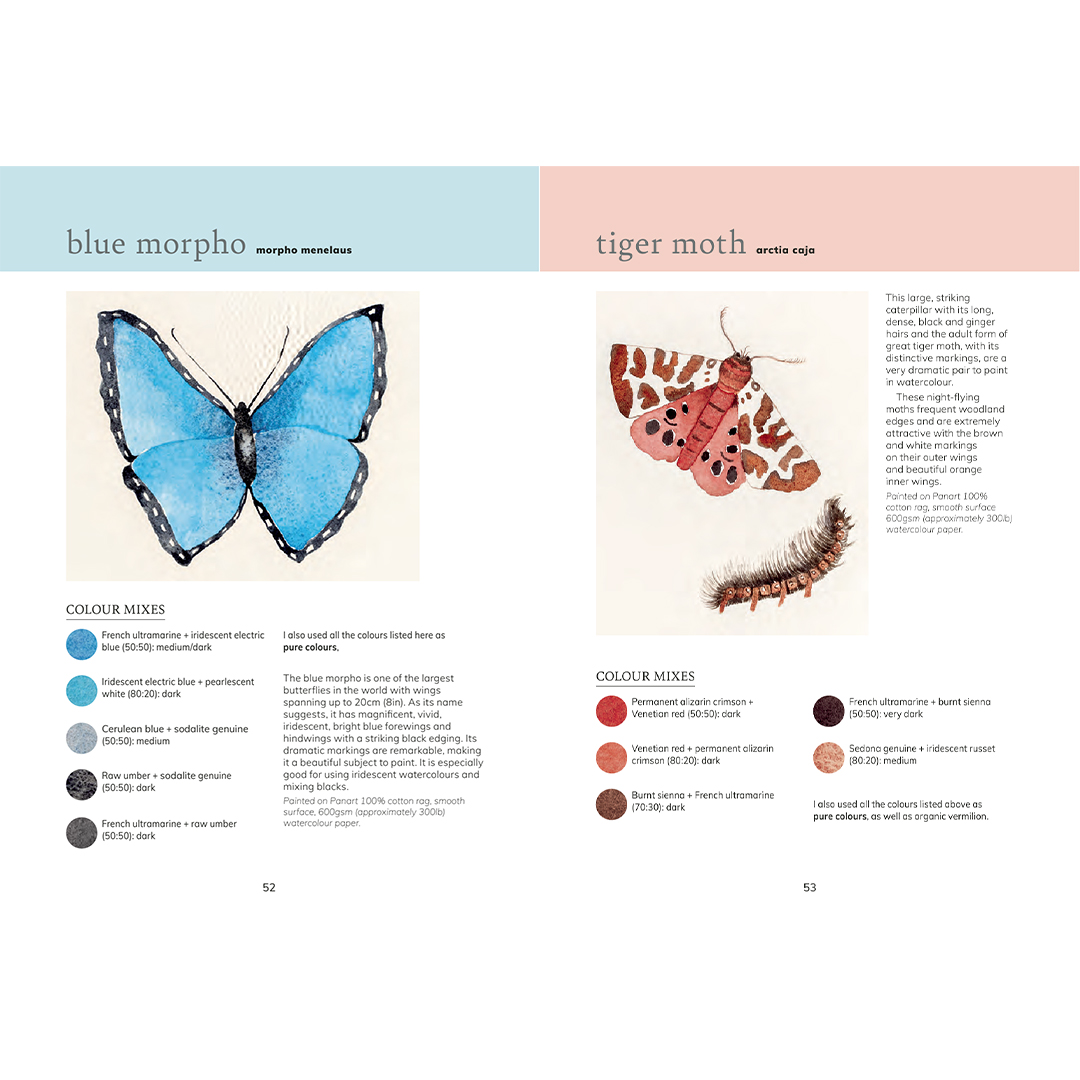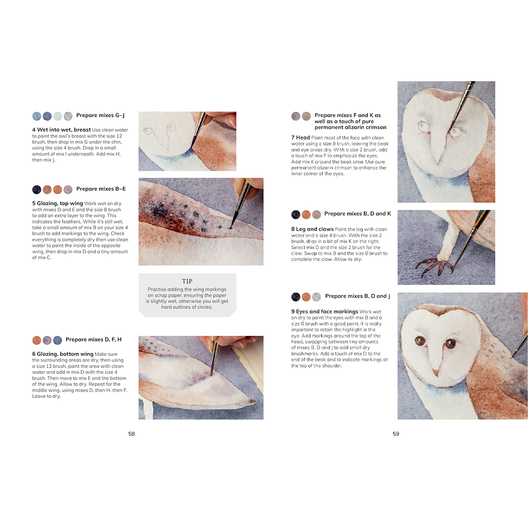 This colourful, practical book features 15 vibrant and varied woodland subjects including a cherry blossom tree, tiger moth, olive tree, silver birches and a barn owl. All 15 subjects feature a complete list of colour mixes used with colour ratios and finished swatches for inspiration, and five of the subjects are painted step by step so that you can follow the process of selecting colours, mixing and painting from start to finish.