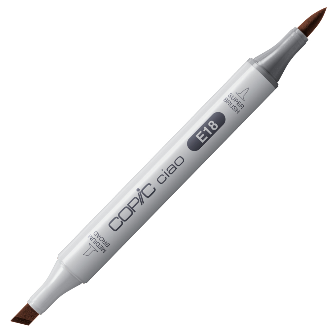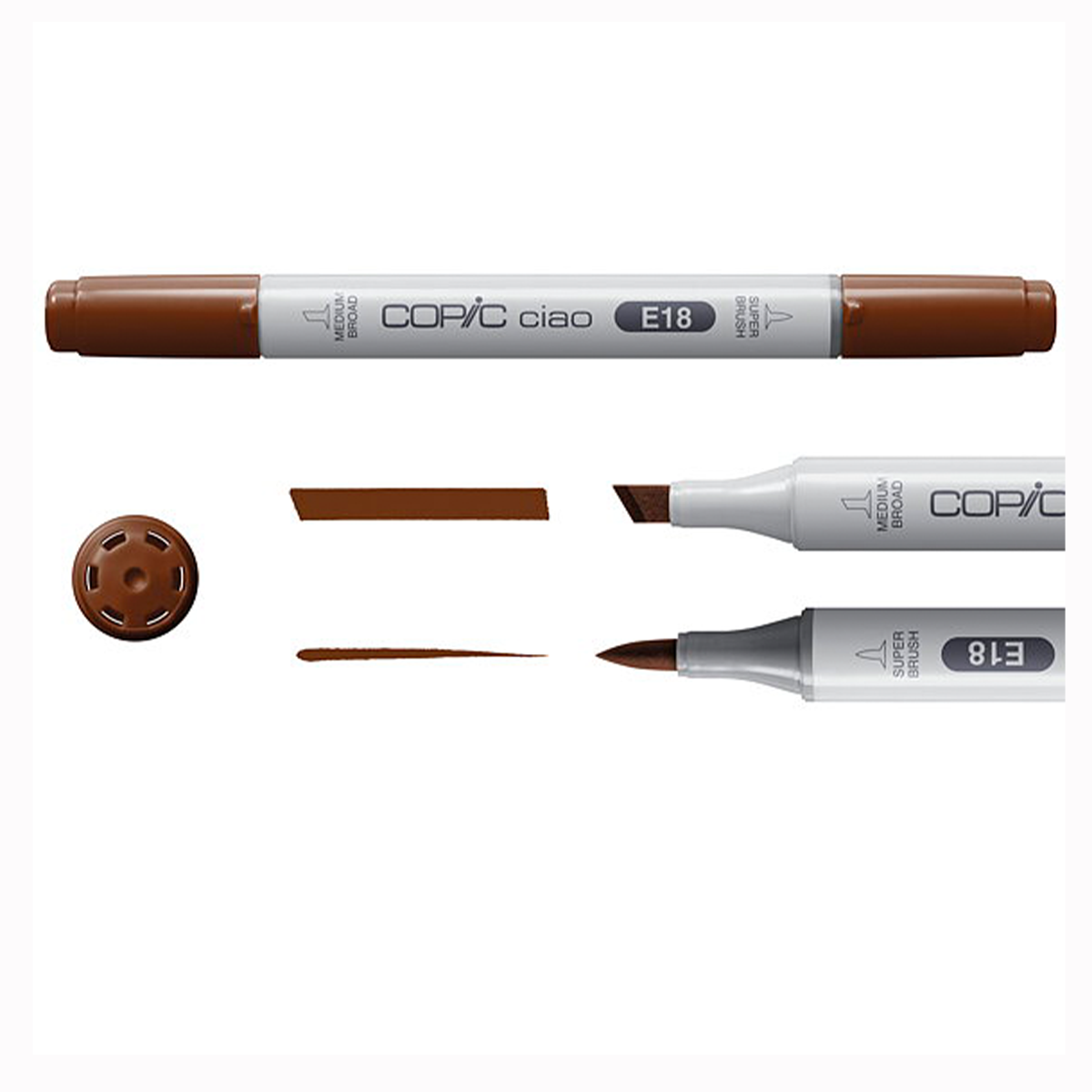 The Copic Ciao has two standard nibs, a medium width nib at one end and a brush nib at the other end. The caps are coloured to making choosing colours easy.