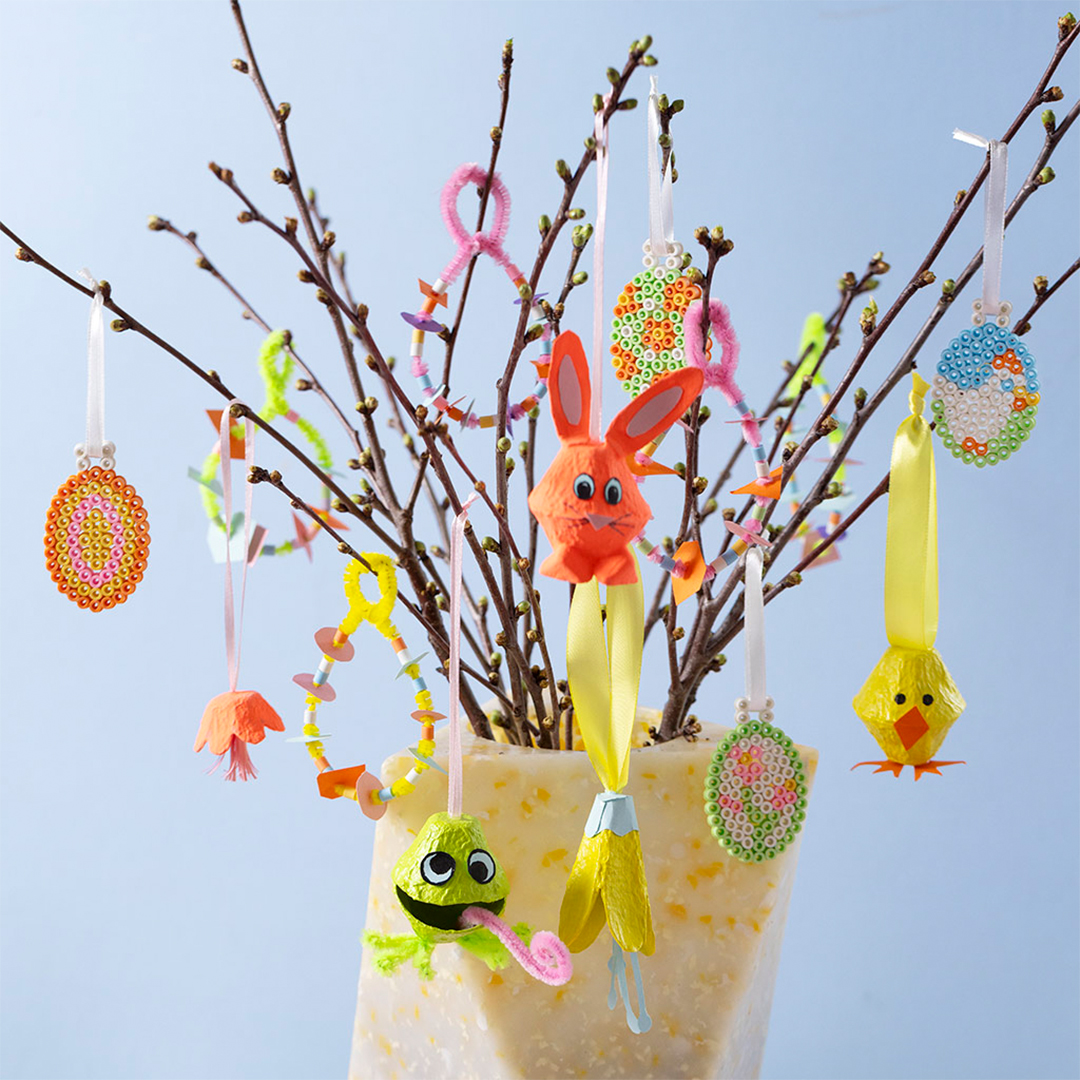 Gather the whole family and make loads of decorations in cool, spring-fresh pastel colours. There are decorations at all difficulty levels so both young and old can join in and have fun. Make small cute figures from egg cartons, decorate eggs with silk ribbon and simple eggs from pipe cleaners with card motifs and tube beads. You can also make spring flowers from egg cartons or regular card. Bunch them together into a beautiful spring bouquet that lasts forever.