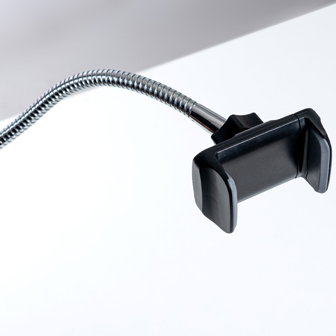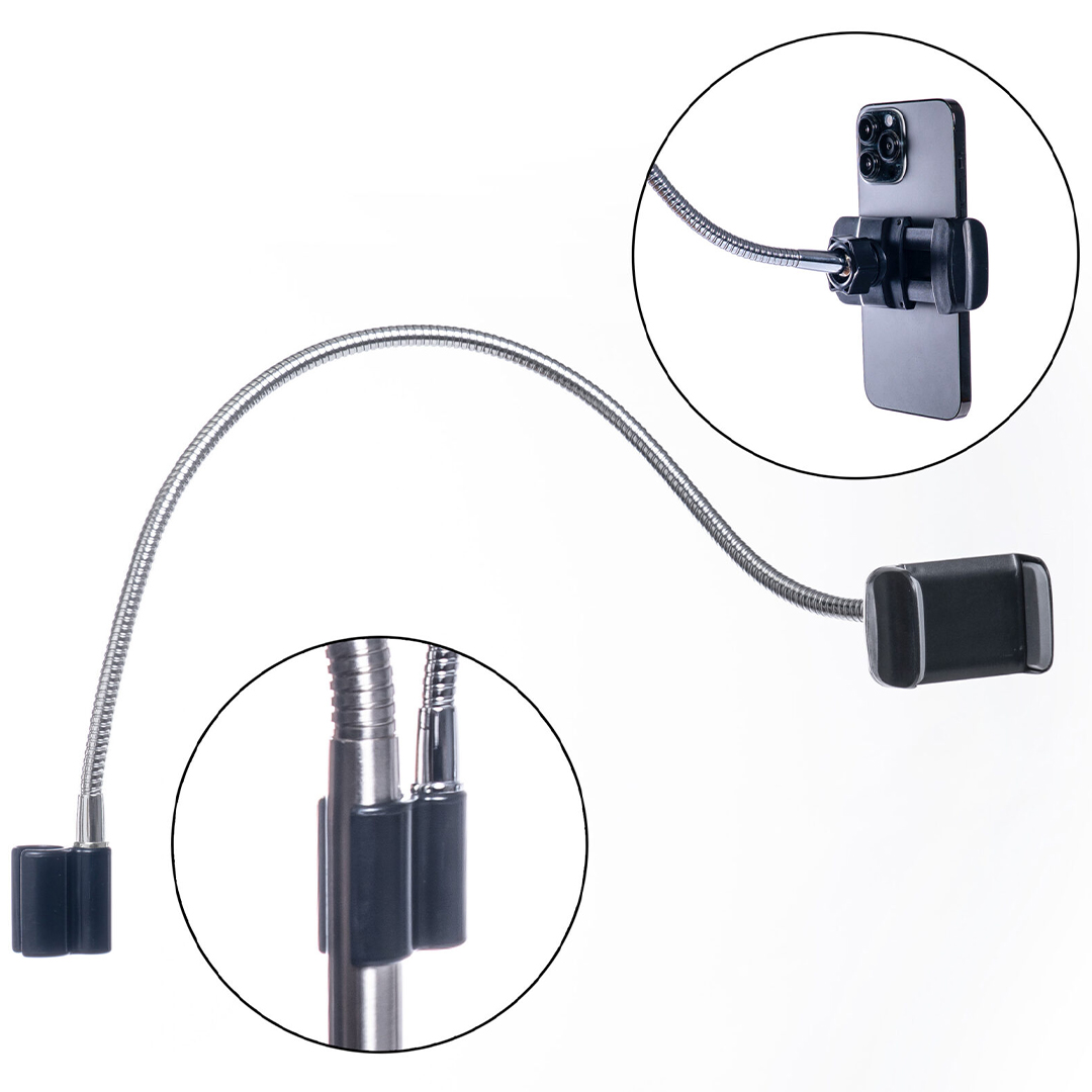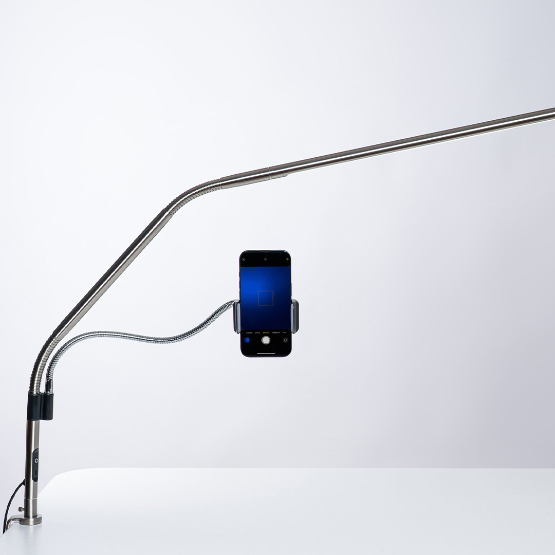 The adjustable arm allows for easy and precise positioning of the phone, facilitating work on small details or complex tasks.