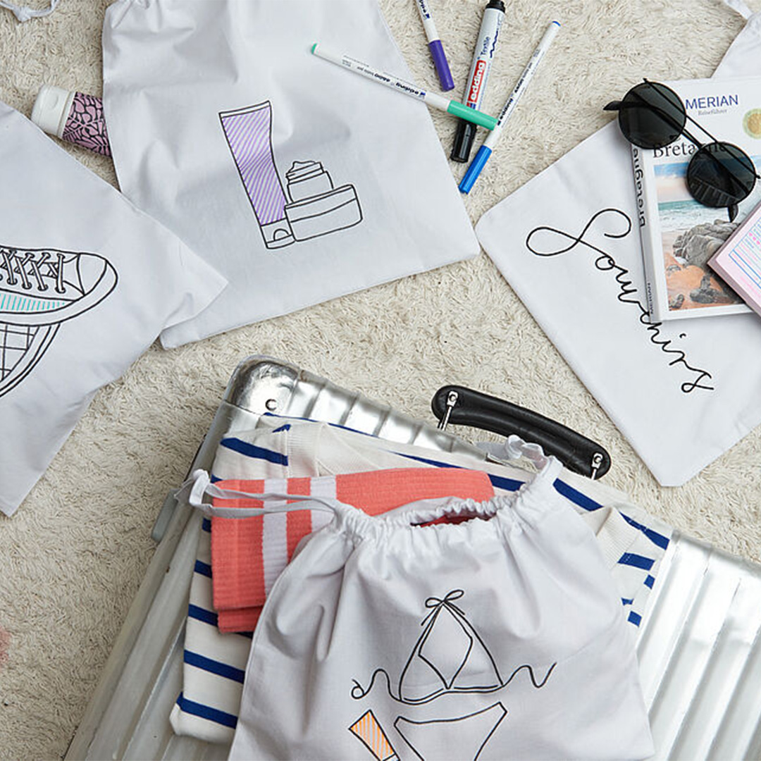 The Edding 4500 textile marker works perfectly on light-coloured, untreated fabrics such as cotton and linen. Once you’ve finished creatively reviving your old materials, you can make the applied ink permanent by ironing once (without steam). After that, the text, pattern or design is washable at up to 60 °C.