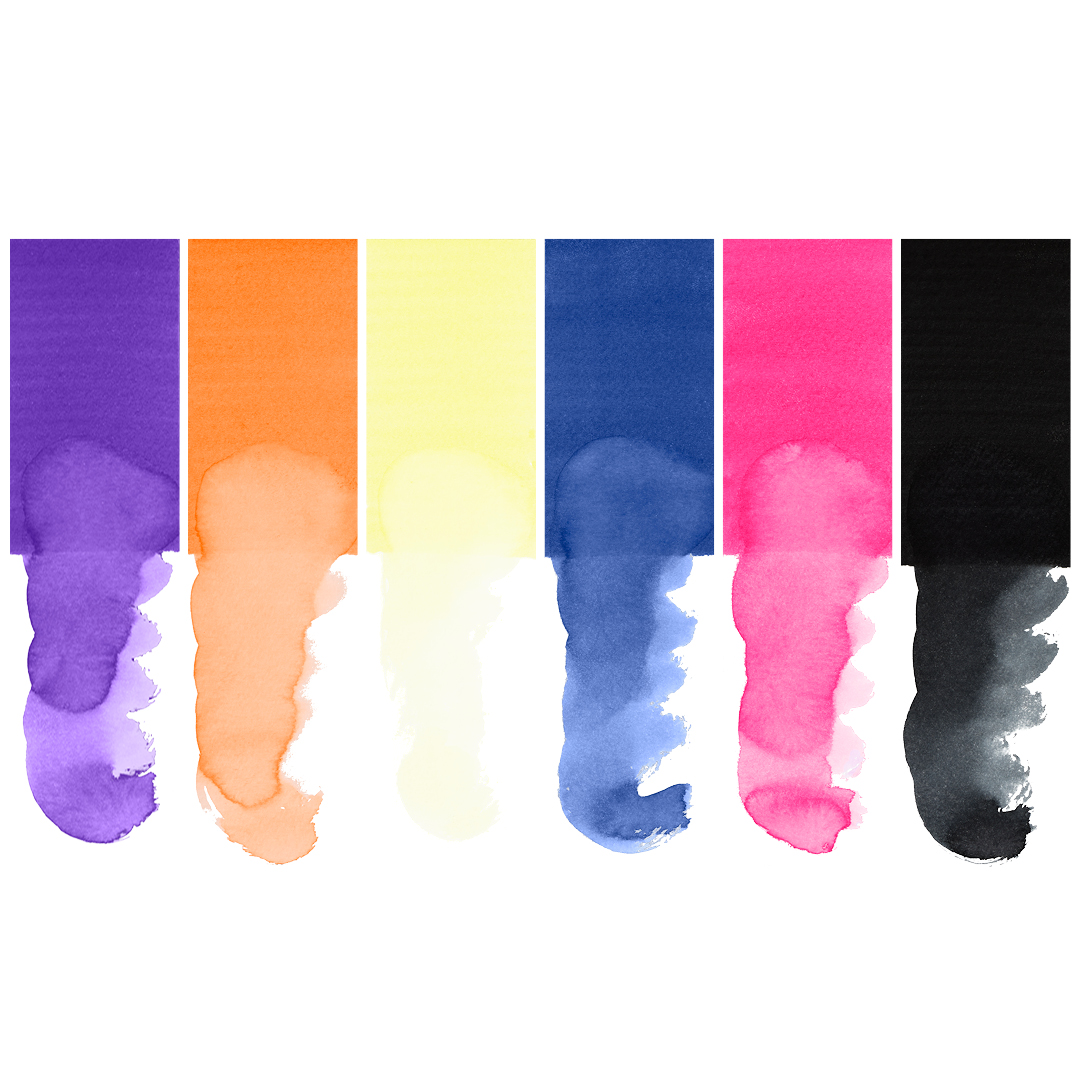 The ink is water-based, which means it won’t bleed through the paper, and water-soluble, which means that it can be used for delicate watercolourings.