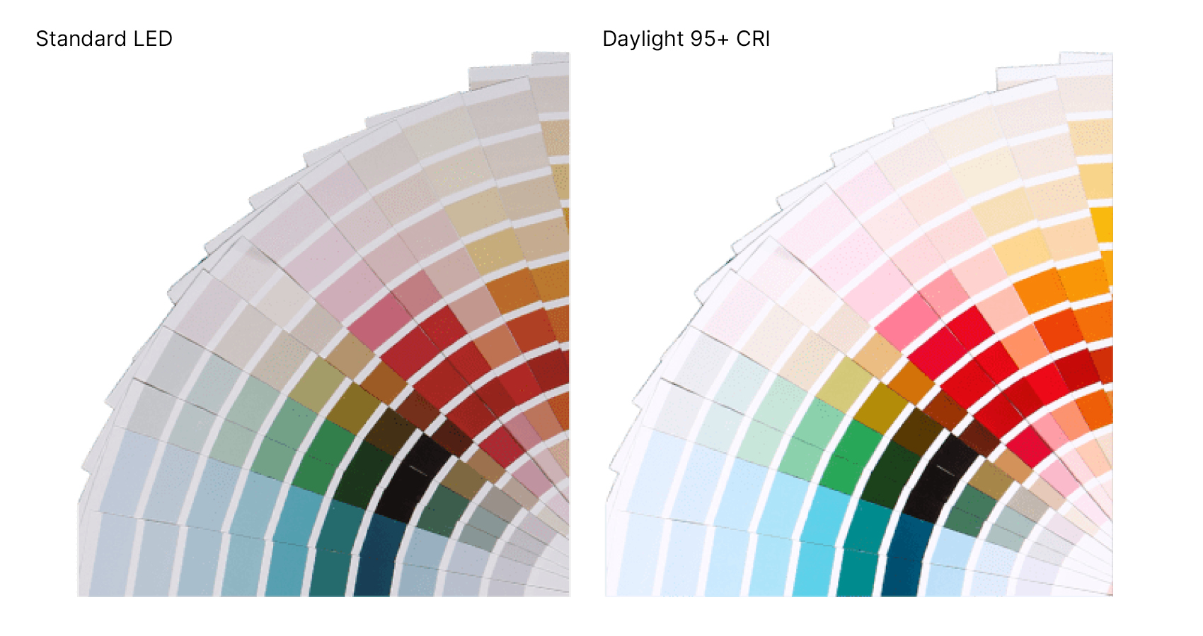 CRI above 90 is regarded as excellent and is commonly used in settings where accurate colour rendering is essential. Professions that often invest in lamps with a CRI above 90 include artists, designers, photographers, tattoo artists, nail technicians and make-up artists.