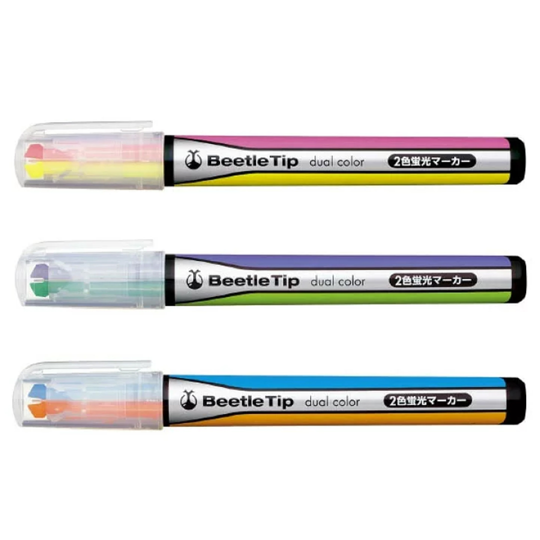 Kokuyo Beetle Tip Dual Color is available in three different color combinations.