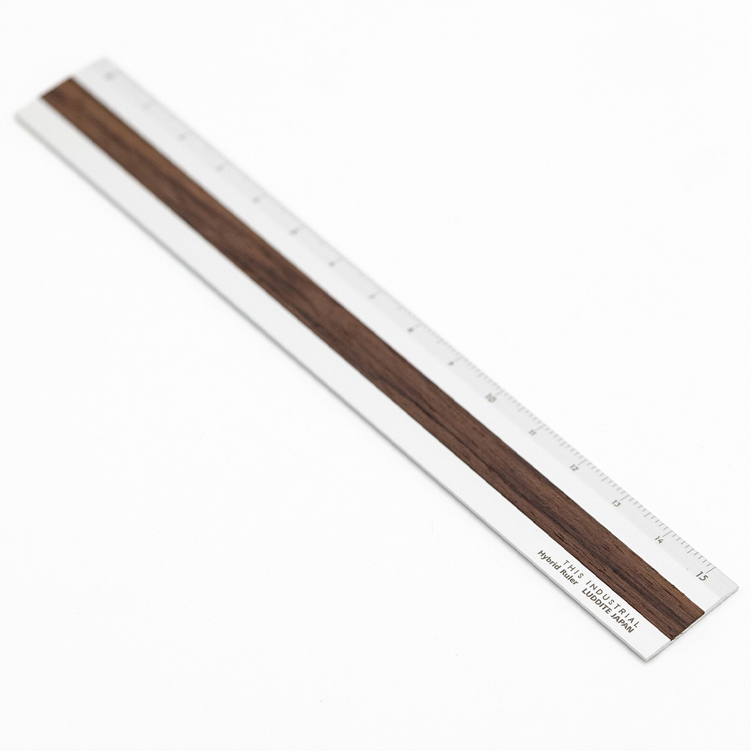 Ruler Aluminium/Wood 15 cm Silver/Indian Rose