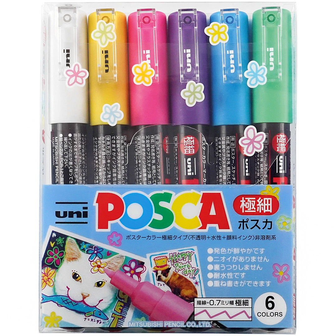 Uni Posca is a water-based opaque paint pen with pigments that adhere to a range of surfaces like paper, cardboard, wood, stone, textile, glass, plastic, and metal. The colour is permanent on many porous substrates and can be removed from smooth surfaces, making experimentation easy without damaging the base. The colour dries quickly, is odourless, and suits both spontaneous craft projects and more advanced artistic works.