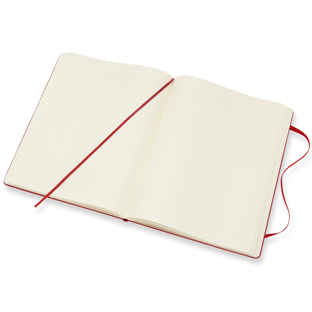 Hard cover notebook in XL size (19 × 25 cm) from Italian brand Moleskine. The notebook contains 192 pages and features an expandable inner pocket and an elastic closure to keep it securely shut when not in use. The ivory-coloured paper is FSC-certified, acid-free, and of premium quality!