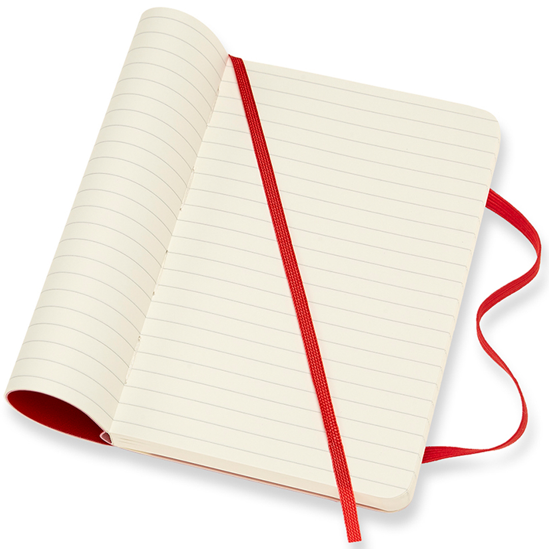 Notebook with a soft, flexible cover in Pocket size (9x14 cm) from Italian brand Moleskine. The notebook contains 192 pages and features an expandable inner pocket and an elastic band that keeps the notebook closed when not in use. The ivory-coloured paper is FSC-certified, acid-free, and of premium quality!