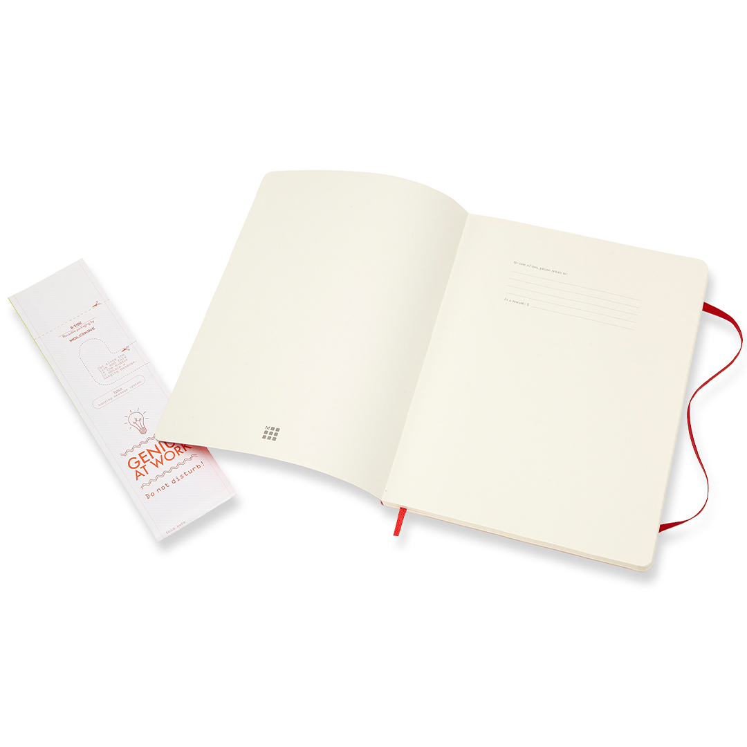 Notebook with soft flexible cover in XL size (19 x 25 cm) from Italian Moleskine. The notebook contains 192 pages and features an expandable inner pocket as well as an elastic band that keeps the book closed when not in use. The ivory-coloured paper is FSC-certified, acid-free and of high quality!