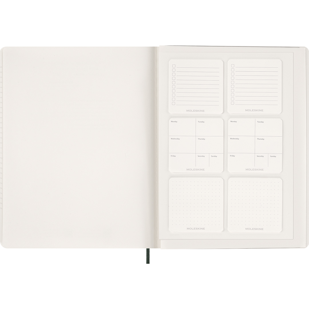 Smart year diary in a soft, slim format from Moleskine, dated from January to January, with all days of the week across a two-page spread. The Essential Planner is designed to be lightweight, portable and easy to use. Make use of the included stickers and sticky notes to plan in your own way.