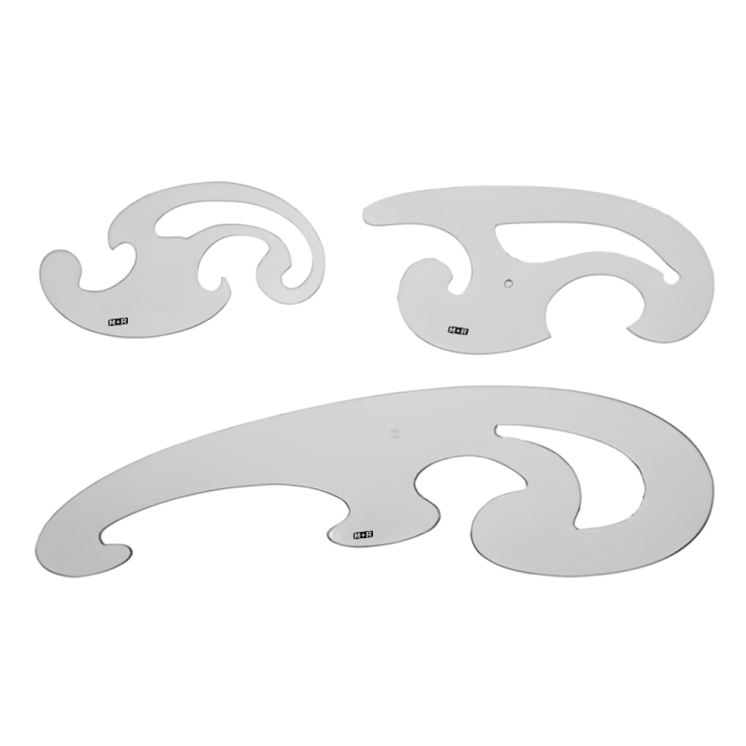 This curvy ruler is from high quality and transparent plastic. Set of 3 different sizes with measurements 13 cm, 17 cm and 32 cm.