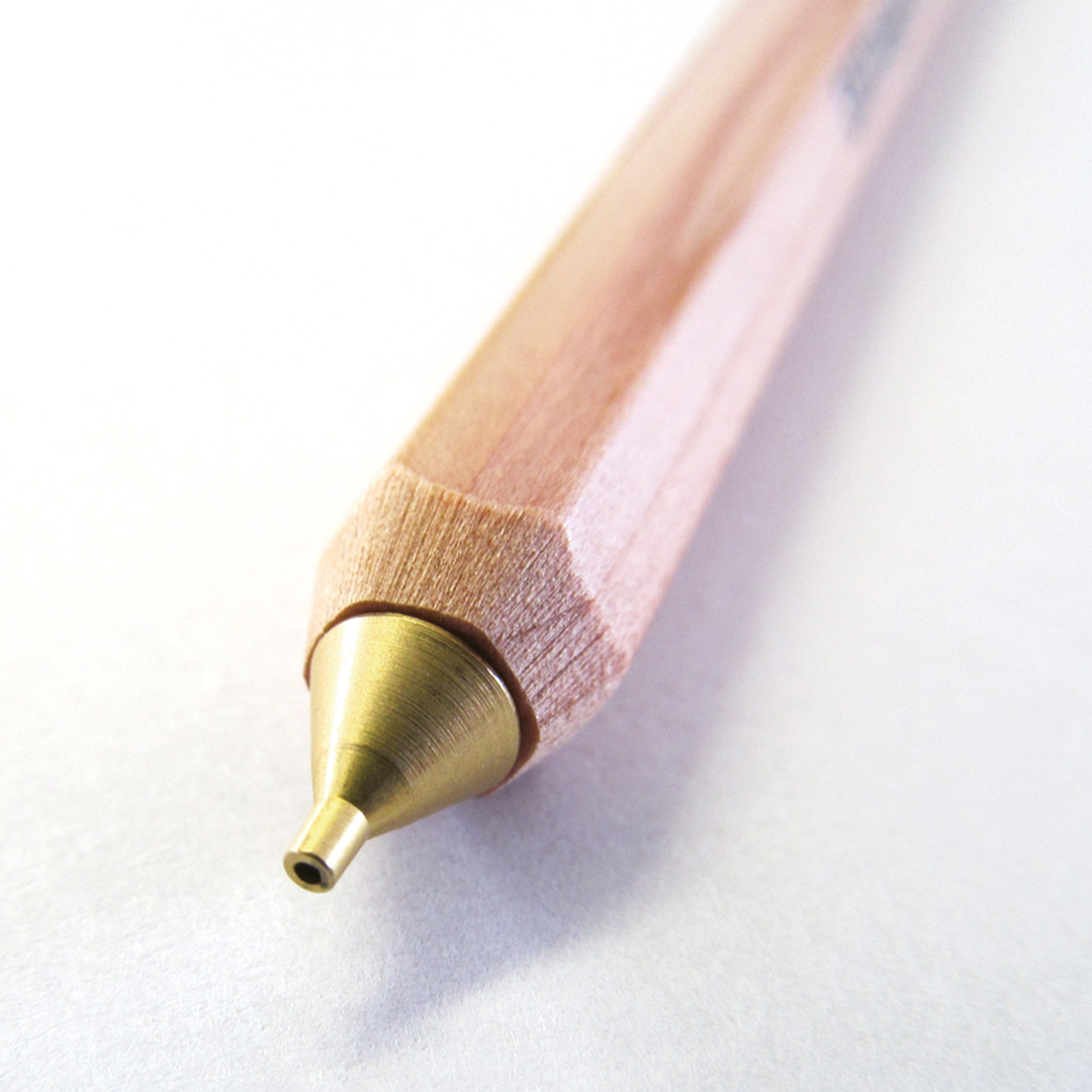 Natural cedar wood body with satin lacquer finish. Integrated eraser. Refillable with 0.5 mm leads. Made in Japan.