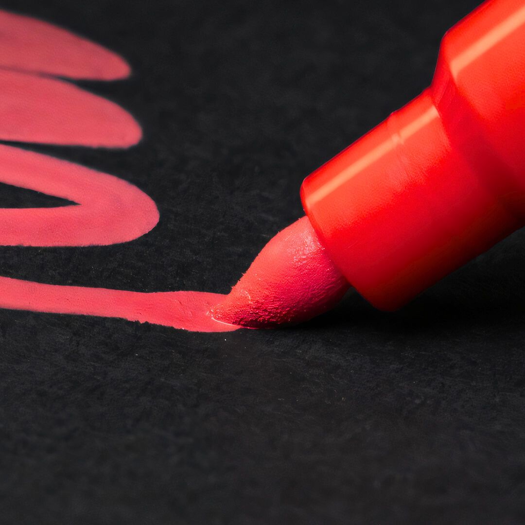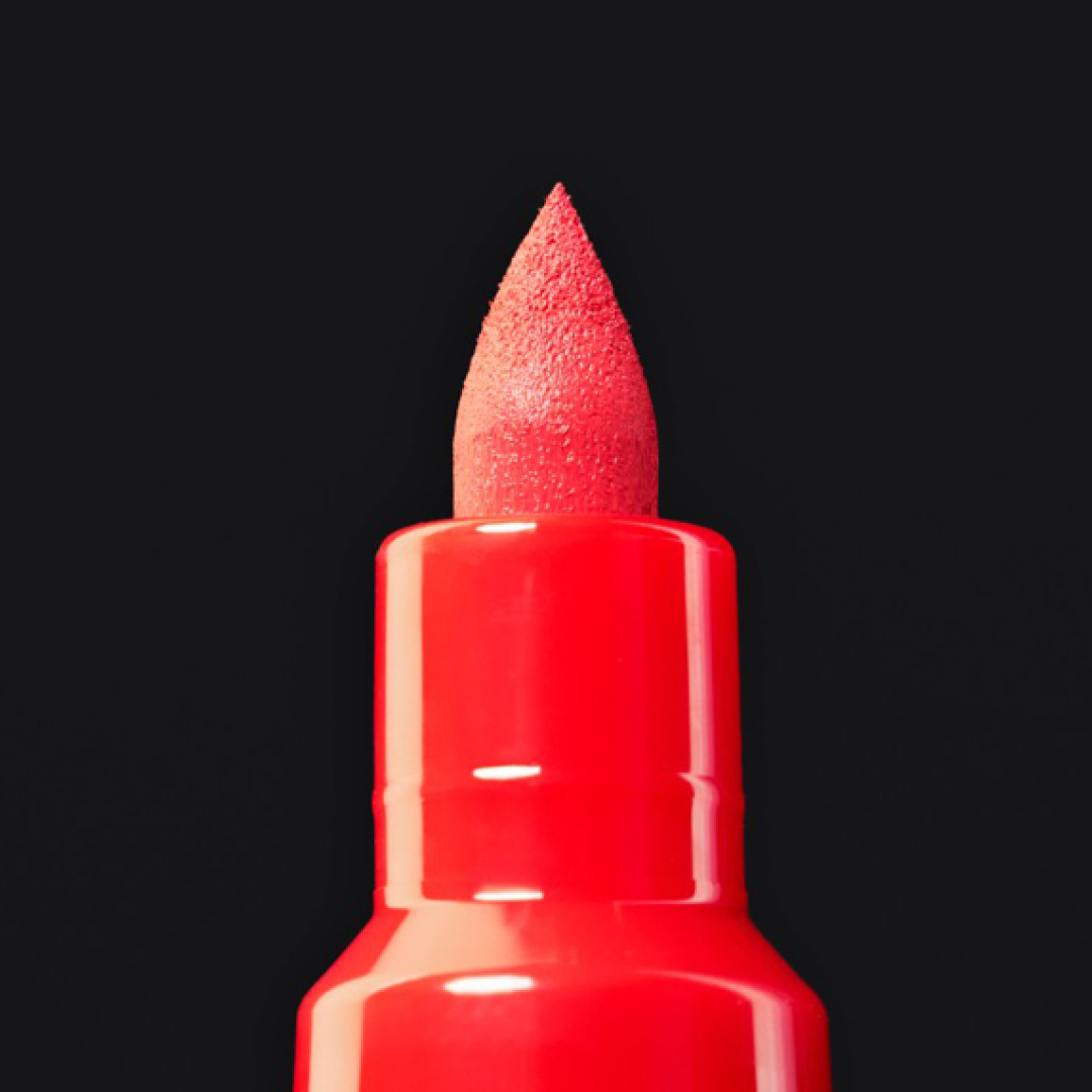 Posca is known for handling tough use with its durable tip, and with the Brush it’s even more versatile. The brush shape gets into pores, folds and edges, covering uneven surfaces like stone, wood and brick with full coverage.