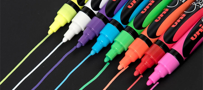 Uni Chalk Marker is a high-quality, water-based marker delivering vibrant, opaque, and easily erasable colours. Perfect for everything from signs and boards to creative crafts and illustrations, these markers dry quickly and provide a smooth, matte finish that makes colours stand out clearly.