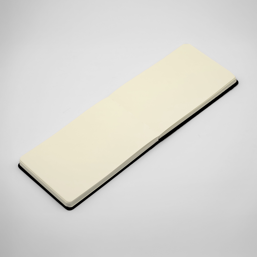 The unlined ivory paper is acid-free and weighs 165 g. Its high quality makes it smooth to write and sketch on without the ink bleeding through.