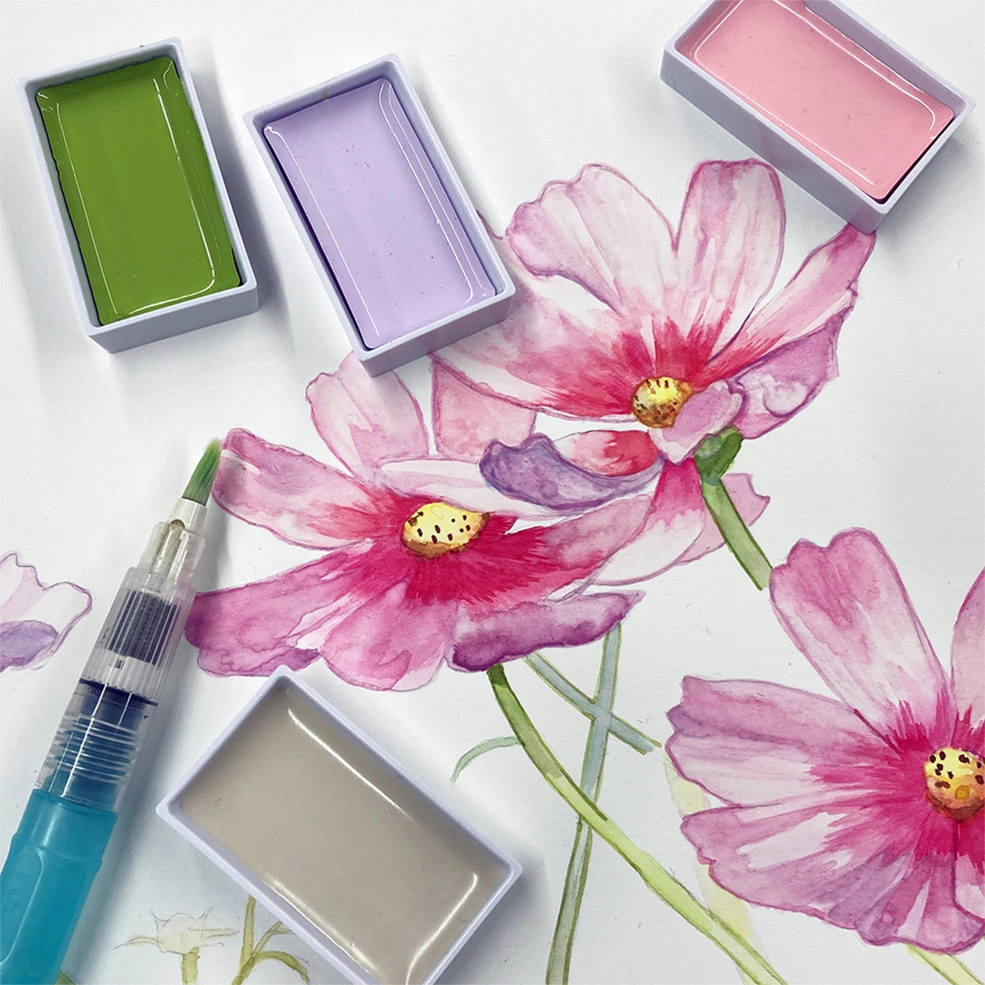 Japanese traditional solid watercolours ideal for professional artists & crafters. This set of 100 pans are perfect for sketching, illustration, sumi-e, etegami and more! Suitable for use with traditional japanese brushes or a fillable water brush.